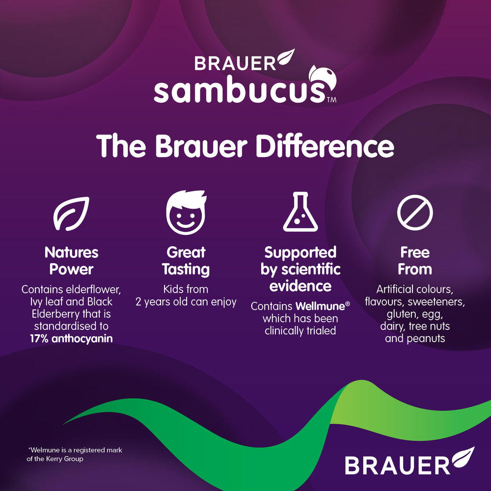 Brauer Sambucus Cold & Flu Forte contains Elderberry, which is traditionally used in Western herbal medicine to relive symptoms of the common cold in children.