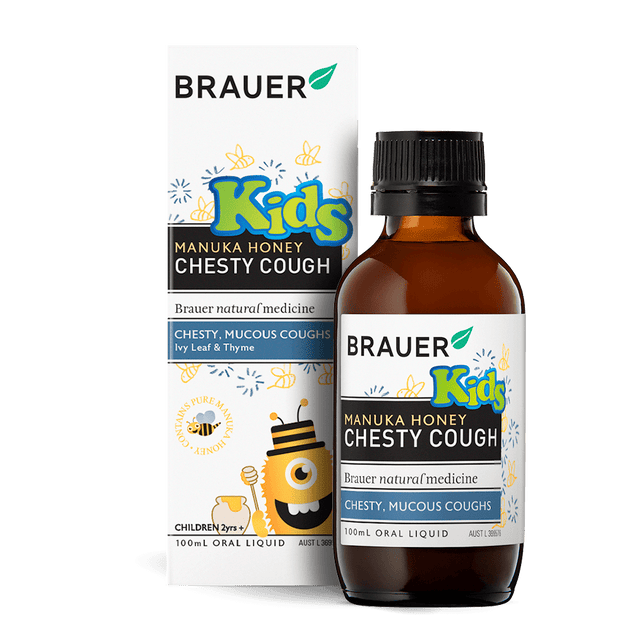 Brauer's Manuka Honey Chesty Cough contains Ivy leaf, traditionally used in Western herbal medicine to reduce mild bronchial cough and mucus congestion in children.