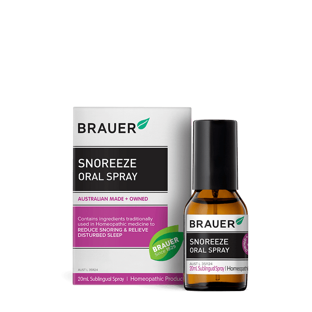 Brauer’s Snoreeze Oral Spray contains ingredients traditionally used in Homeopathic medicine to reduce snoring and relieve disturbed sleep.